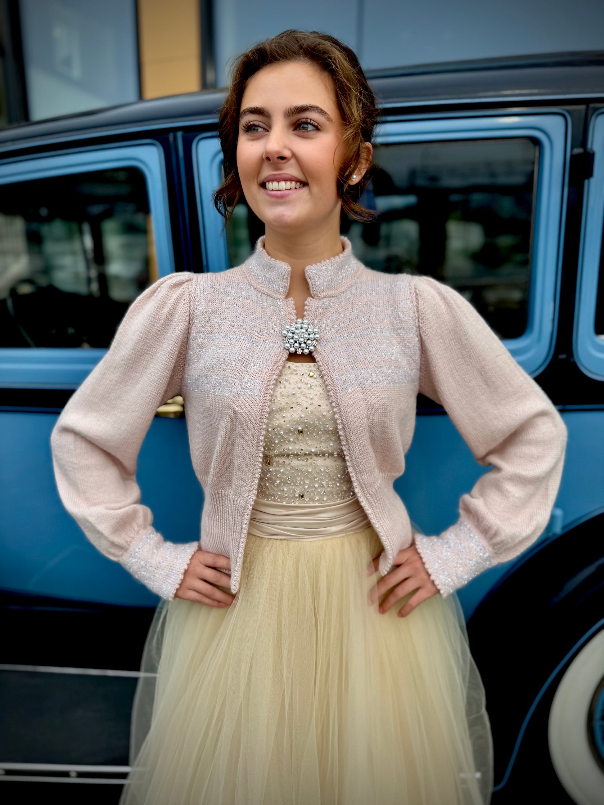 Denne jakken kan brukes til alle festanledninger - til både brudekjolen og festantrekket generelt. Strikkeoppskriften er et samarbeid med www.garnfeene.com som har spesialfarget et nydelig garn til oss i en blanding av 50% merino og 50% silke. Garnet er IKKE superwashbehandlet. Garnet heter Feenes Silkestrømper.