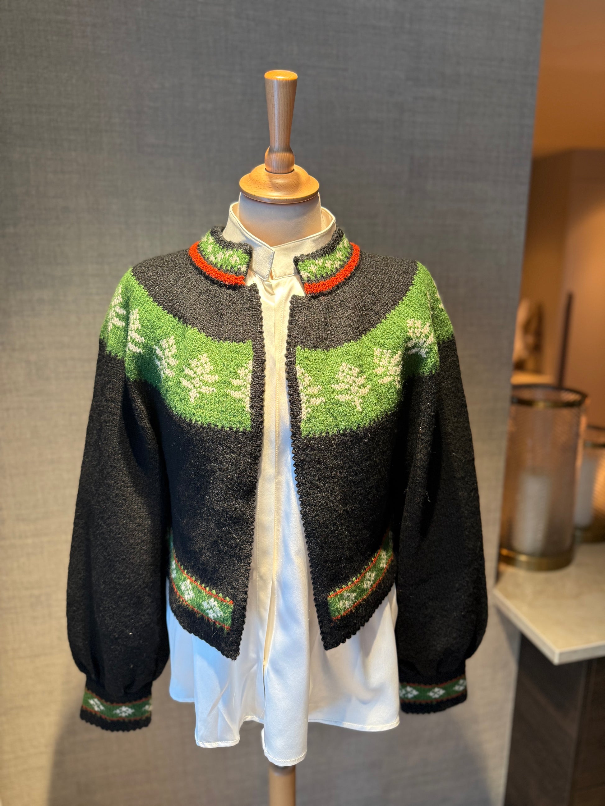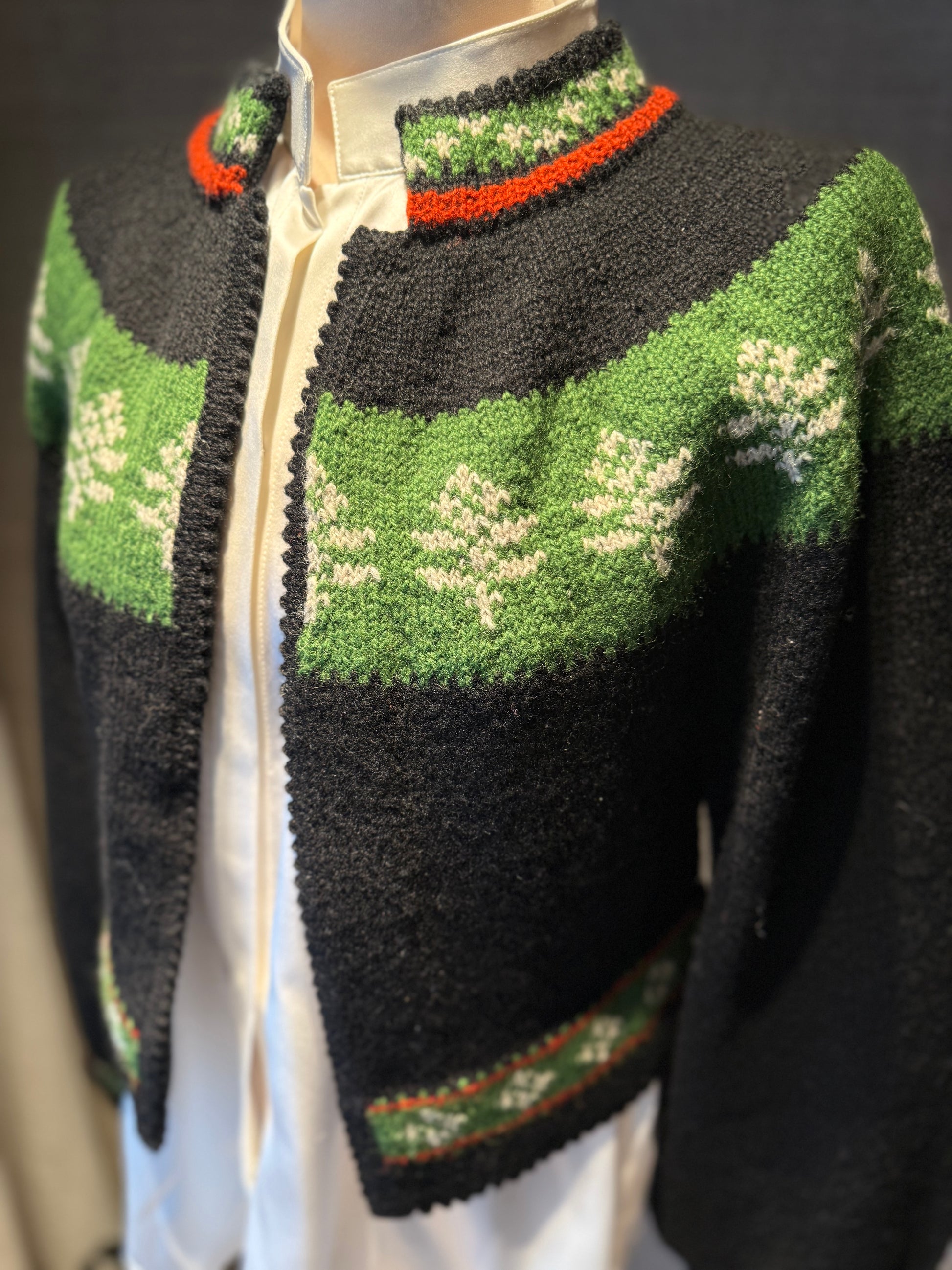Denne flotte jakken tilpasset grønn Østfoldbunad, selges nå til 3500,- + frakt ved forsendelse.